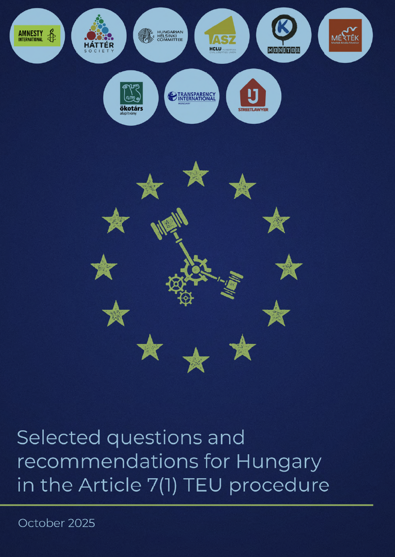 Ez a független magyar civil szervezetek által készített dokumentum az elmúlt év legfontosabb fejleményeire összpontosít az EU-értékek védelme szempontjából különösen releváns területeken. Összefoglalja a legsürgetőbb aggályokat és ajánlásokat, amelyeket a Tanácsnak a 7. cikk (1) bekezdése szerinti eljárás keretében szükséges lenne felvetnie a magyar hatóságokkal szemben. Nem célja valamennyi probléma vagy a szükséges intézkedés teljes körének bemutatása; sokkal inkább azokat a legsürgetőbb lépéseket emeli ki, amelyeket a kormánynak és a parlamenti többségnek meg kellene tennie a demokratikus visszacsúszás megállítása és a kölcsönös bizalom helyreállítása érdekében Magyarország és a többi tagállam között.